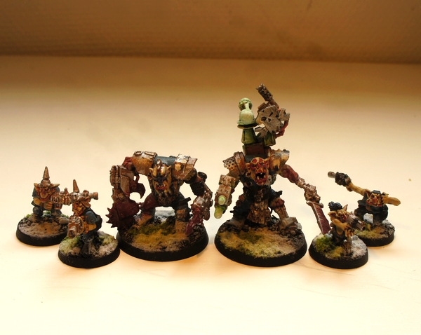 Big mek Red Skullz with 2 grot oilers and a painboy with two grot orderlies.