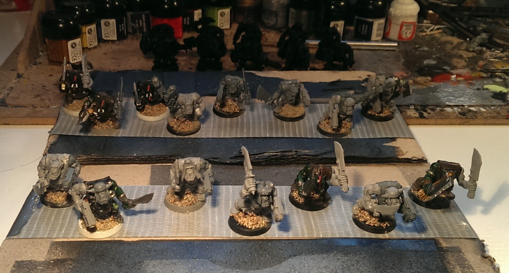 The 10 basecoated are the second half of the ones painted already in the first mob. The 15 in waiting for a basecoat is the first half from the second mob.