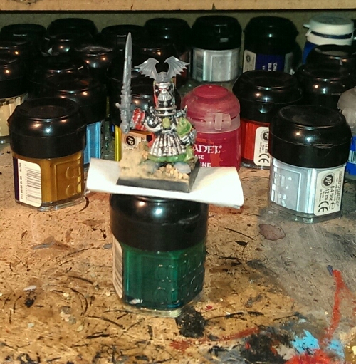 Base model is the hero on the great taurus. Shoes are from Orks, sword I can’t remember but I think the chaos warriors sprues, evil bat top from the zombie dragon sprues.