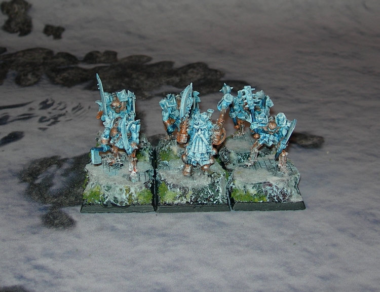 With this army I went back to my trusted realistic skin tone and started my “blue period” (where I’m obviously still stuck). I took the basing a bit further here and I think that they’re simple but very nice. The big thing I learned in this project was salt & hairspray weathering and using GWs technical paints. Both are awesome!