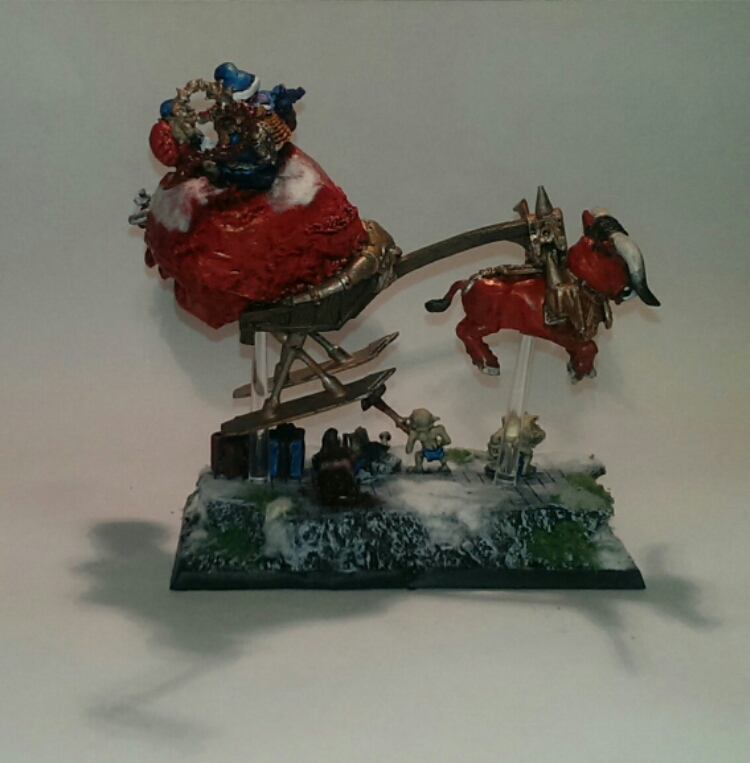 I wanted to use the holidays and that I’ve wanted to make a count as great taurus with Grom the Paunchs chariot for a long time. Enter Santa Zharr!