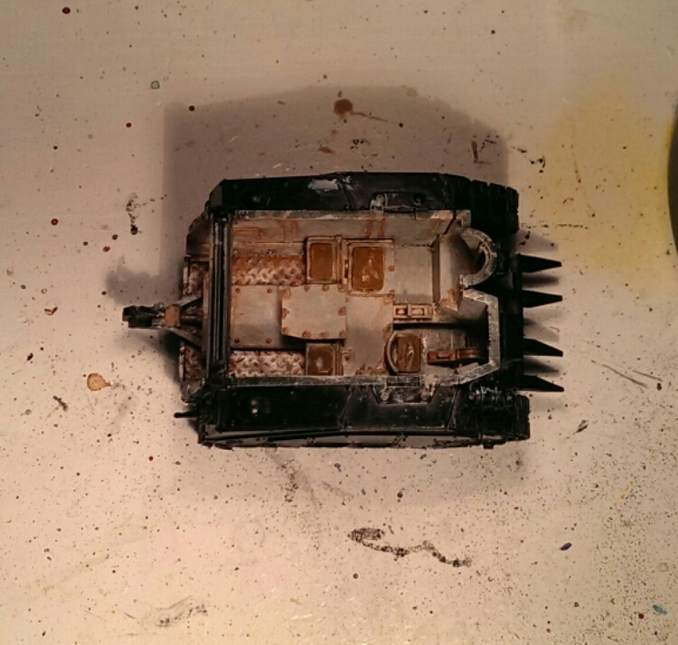 I started from a black basecoat. Then I drybrushed with ushabti bone and finally with white. Diluted first chestnut ink and covered the entire interior with it. Lastly I used diluted beastial brown to spot out details with a darker shade of brown. Not too bad I think. Opinions?