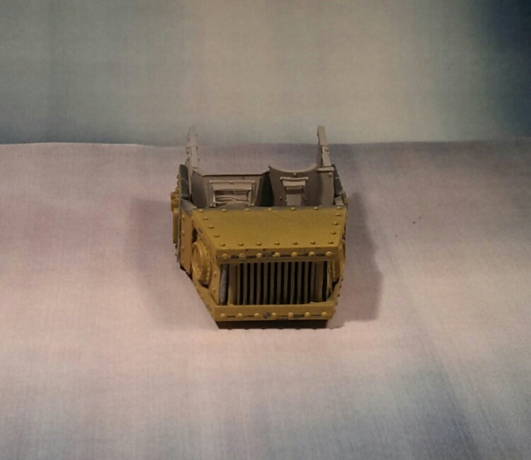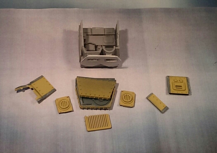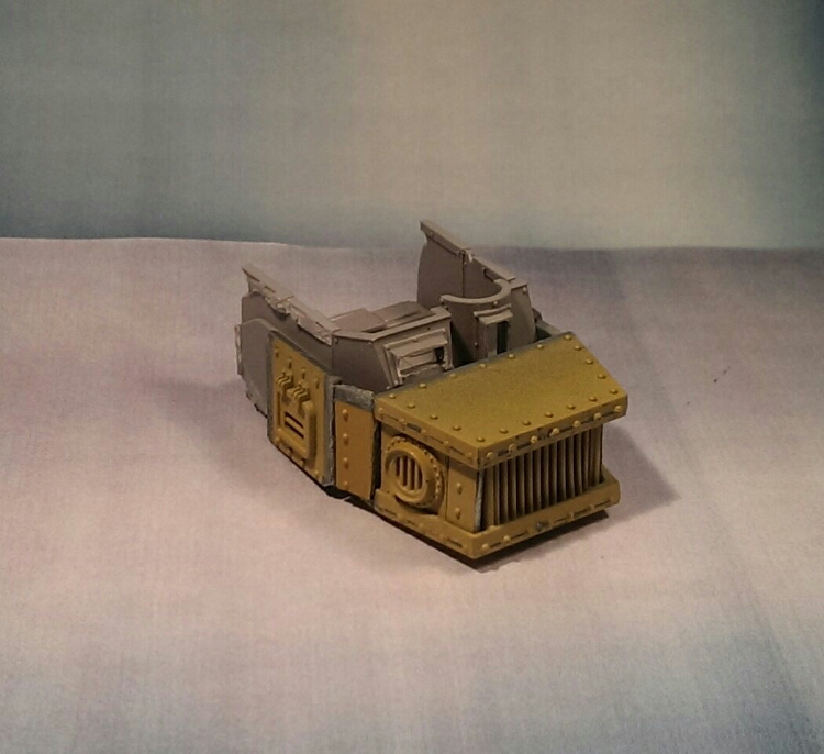 Pictured above is the final bitz I settled for. At one point I thought a Reaver Titan faceplate would work hence the white plasticard front there. But I wasn’t happy with the bitz I could source so I decided to go for a warhound look.