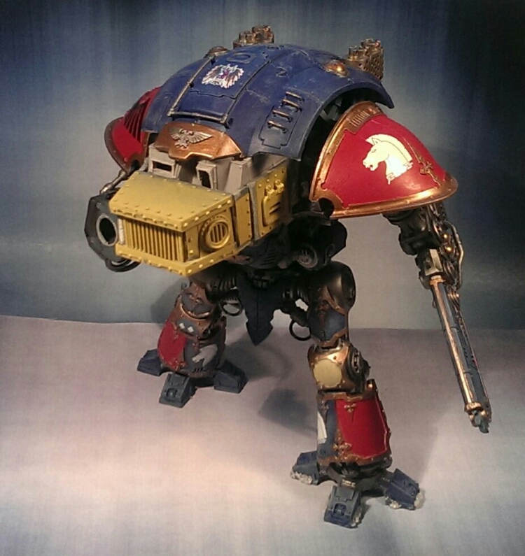 Cheers mate, appreciate it 🙂 I’m adding some more armour on the torso and on the top armour to smooth the transition. I’ve reasoned that it was a direct hit in the centre killing the former operator and reducing the machine spirit to a flicker of it’s old self. Anyway, so not that much left basically before I fix the base.
