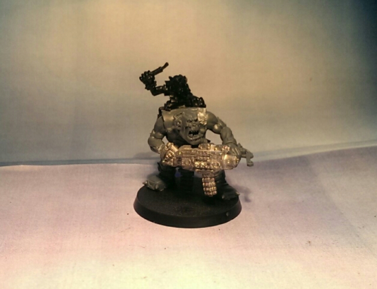 I tried for a long time to truescale an ork but in the end I dropped that approach. I went for a very plain version of a miniature (flash git) that I really love. I think they’re some of the best plastic infantry I’ve seen. I’m biased of course, but who’s not for something they feel for. The heavy bolter is an ancient one I’ve had for a couple of decades I reckon. It’s a CSM if I’m not badly mistaken.