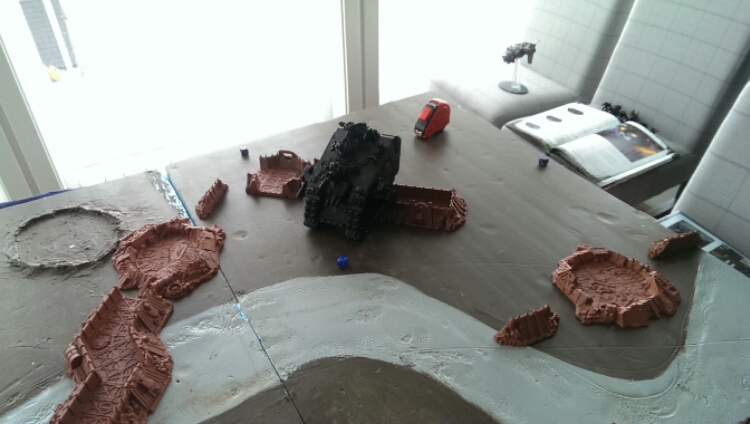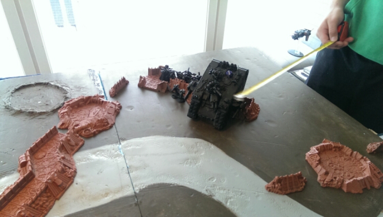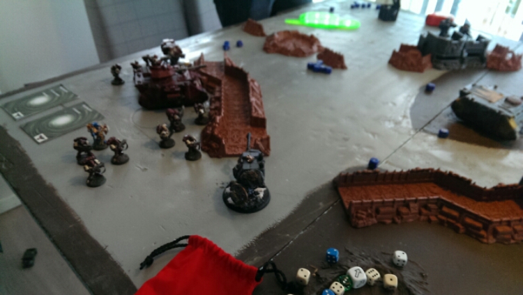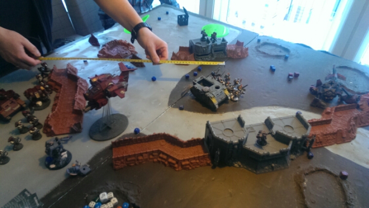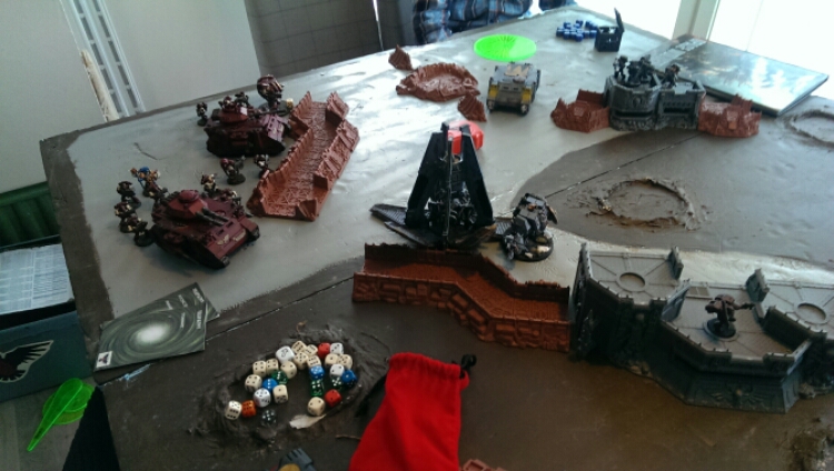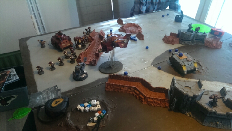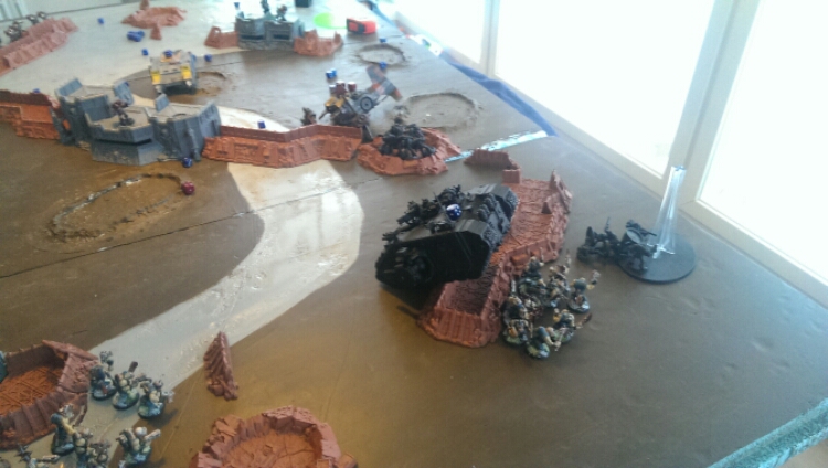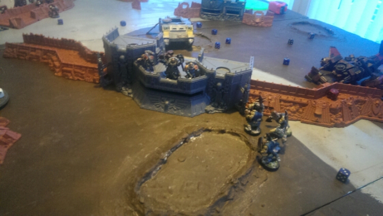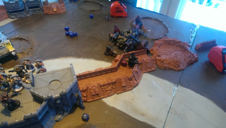 Ask goes next but his land raider failed the dangerous terrain test and is stuck. Lol!