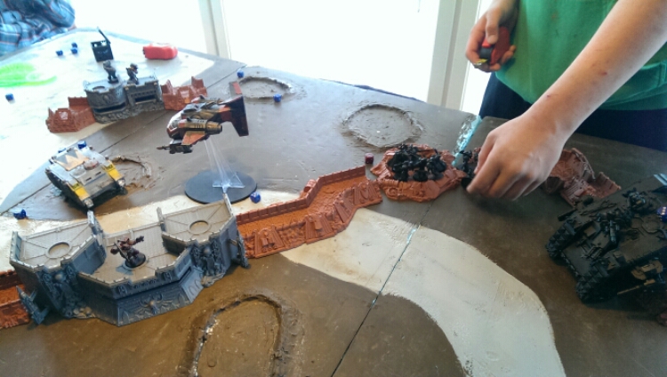 I. Then shooting. Lootas takes 1 hp off the talon. Morkanaut failed to injure the SM squad. SAG (running for MVP btw) shoots at Trond, rolling a vortex in the process (yay fucking YAY!). I kill 3 marines, rest of the squad leg off the board. Dreadnought glanced to death and pred lost a wound. Vortex is remains in play in Trond’s deployment zone.