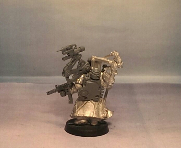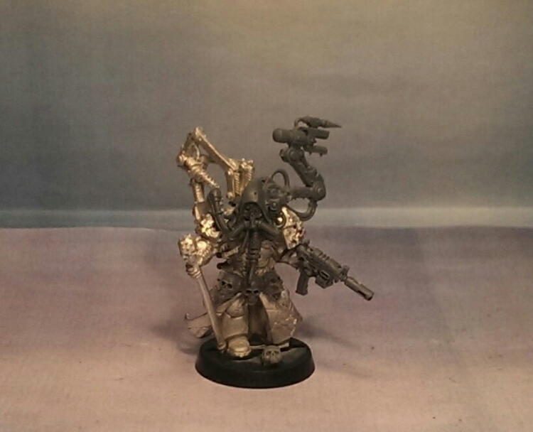 Wow, this guy is looking really cool! Fabius Bile was a great choice for a foundation for the model and the incorporation of the Tech-Priest Dominus head is just fantastic. The Flechette Blaster was a fitting choice for the model too. I love the machine-pistol look to it.