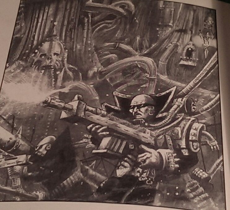 I do have a basic grasp of Necromunda and the rules but what’s more striking are all of the awesome artwork in the book. Here’s some samples.