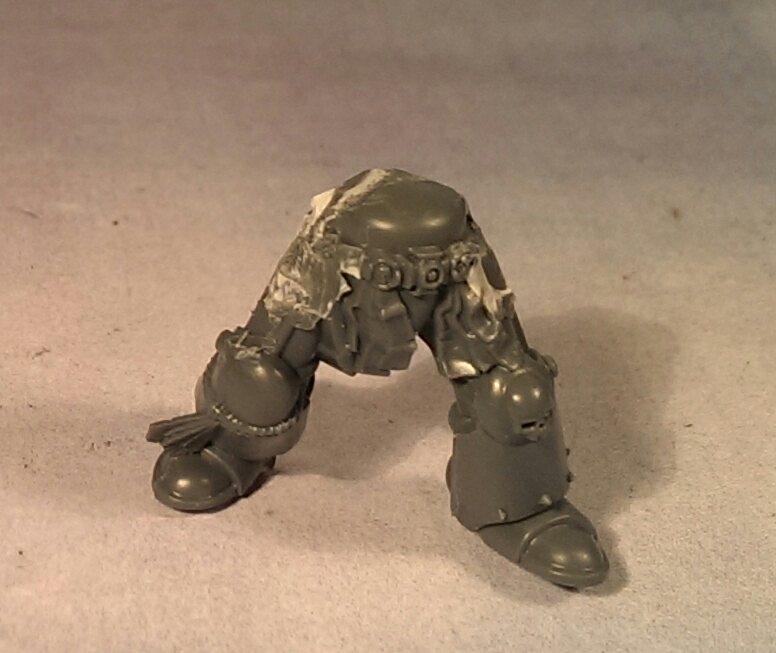 I pin the torso and glue it on letting it dry before I greenstuff the torso.