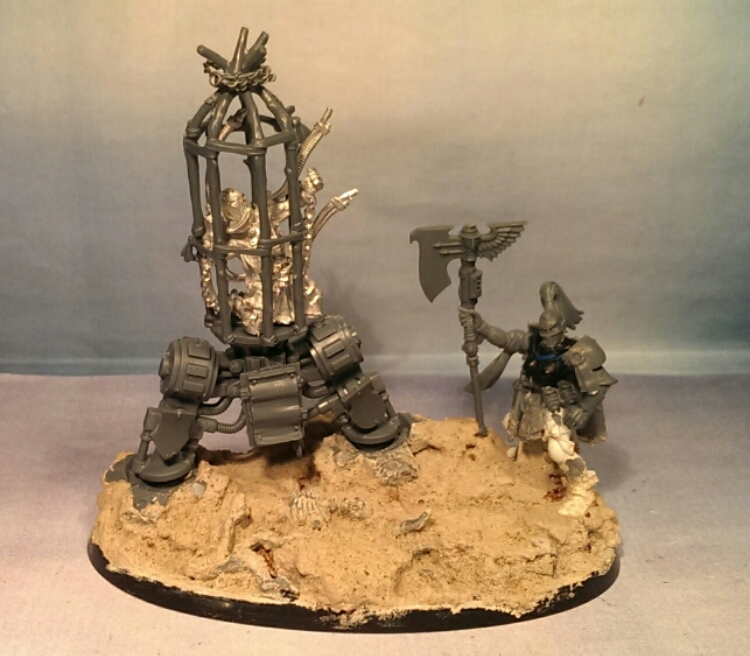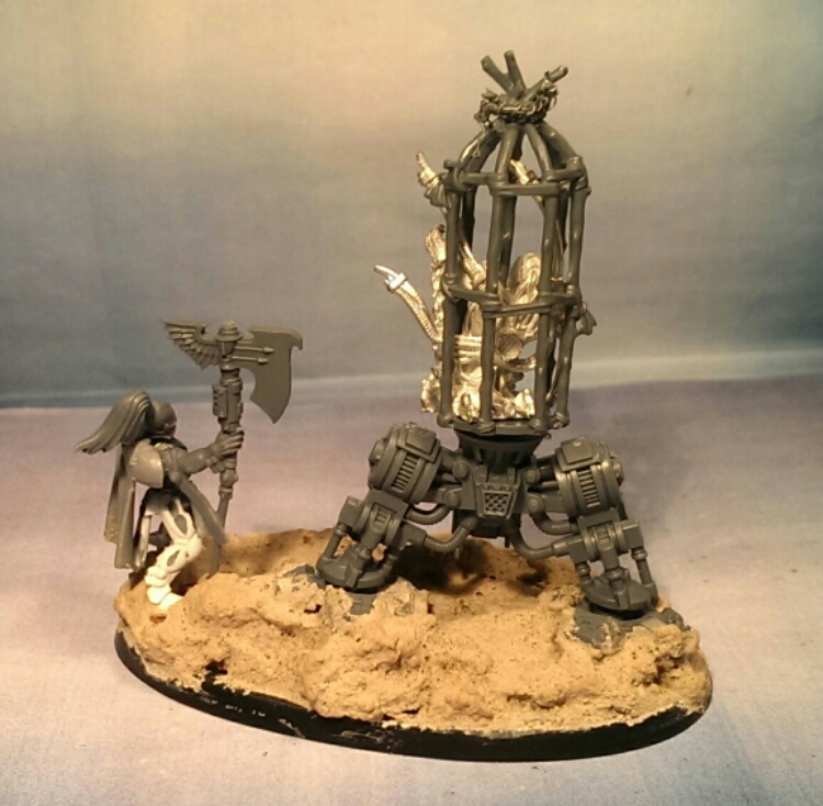 Ok – WOW – that is a brilliant little piece mate. Fantastic use of the old bits box there. The Dread legs suit perfectly for the cage. It brings to mind one of the Gaunts Ghost books where they encounter a group of bound sanctioned psykers.