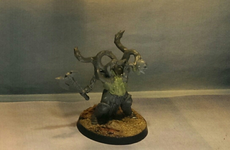The build itself is fairly uncomplicated. A couple of those weird spawn heads (or is it arms?) with a fanatic head and a marauder axe.