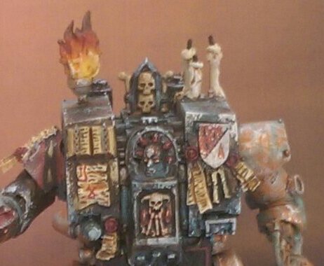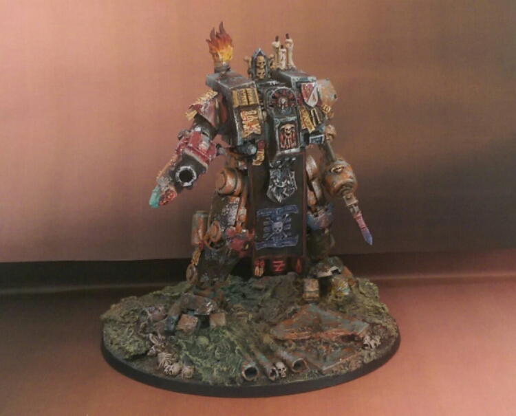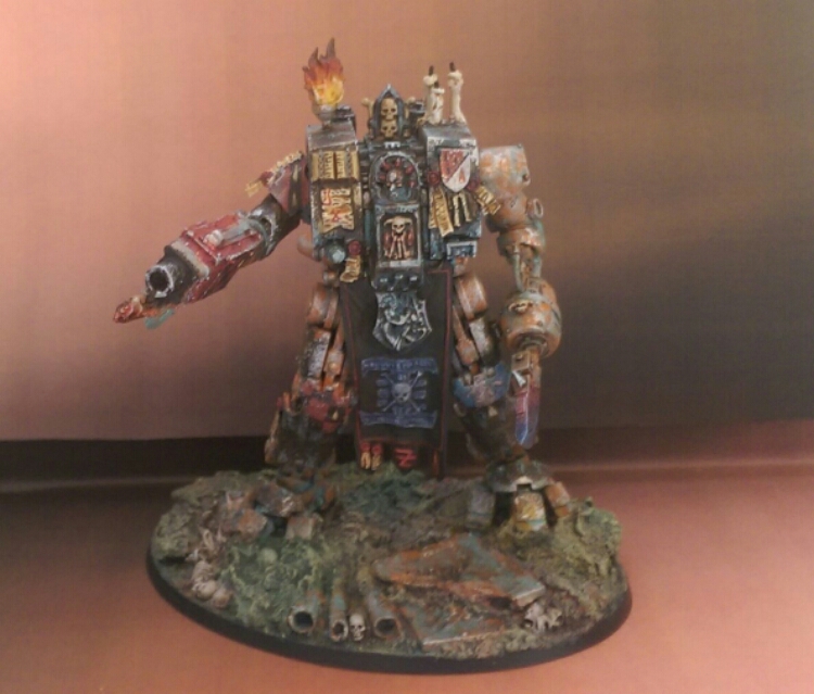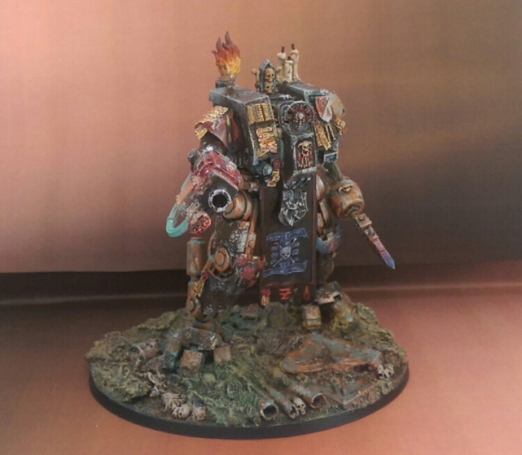 Thank you π it’s a conversion, a merger between a Grey Knight dreadknight and a Blood Angels dreadnought. The heavy bolter is partly made by me with plasticard.