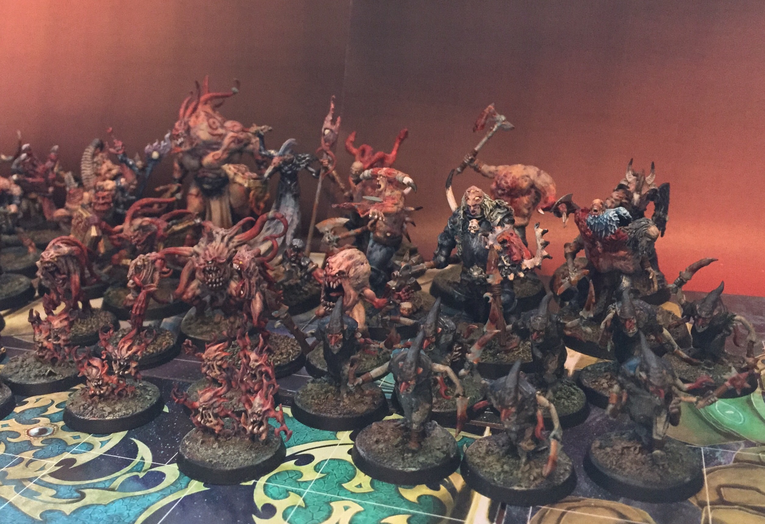 I would love to see some of these models in real life. The pinkish human flesh colour on the daemons make them look a lot creepier and more nightmarish, than the classic GW painting style. It’s great to see them all together!