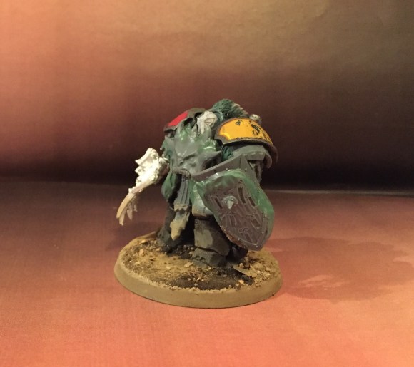 Fantastic looking conversion and a great rendition of John’s artwork! I love the warrior’s breastplate and the power generator on his back. He looks like an insurmountable wall; a bastion against all that would stand before him! Perfect choice for the head too.
