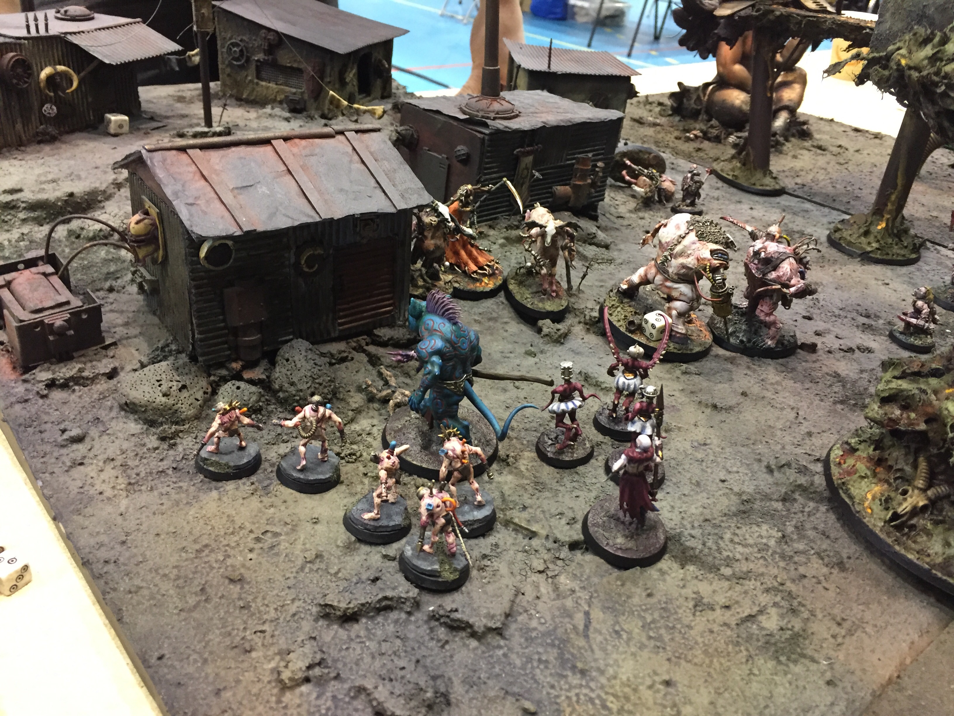 As the warbands collide the Pox aim to block the Pact while they go all in on the Oratio..killing the giant as it stomps in panick and inflict many wounds on the Pox..however the Pact has arrived and the Butcher guns down a pestigor and charge in with his warband..