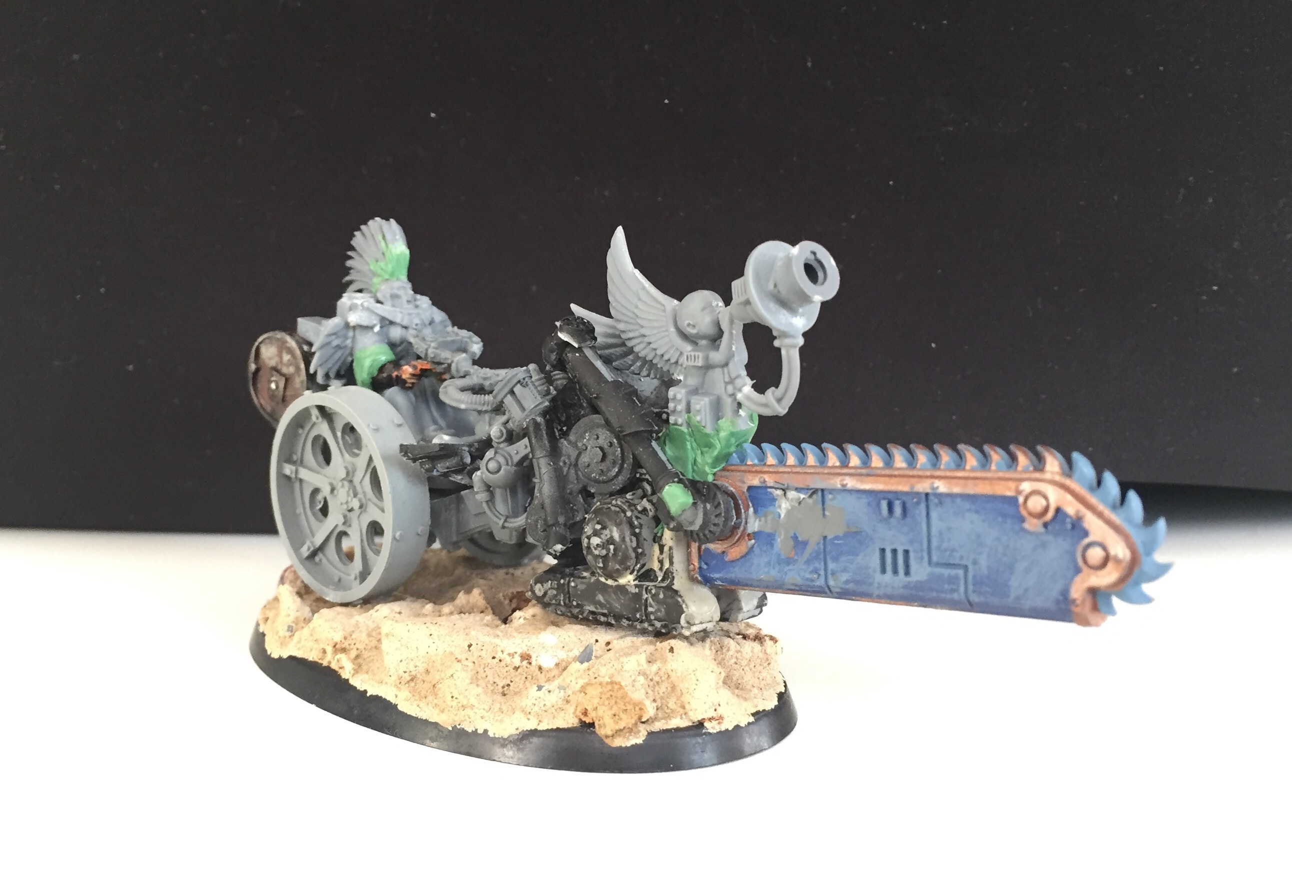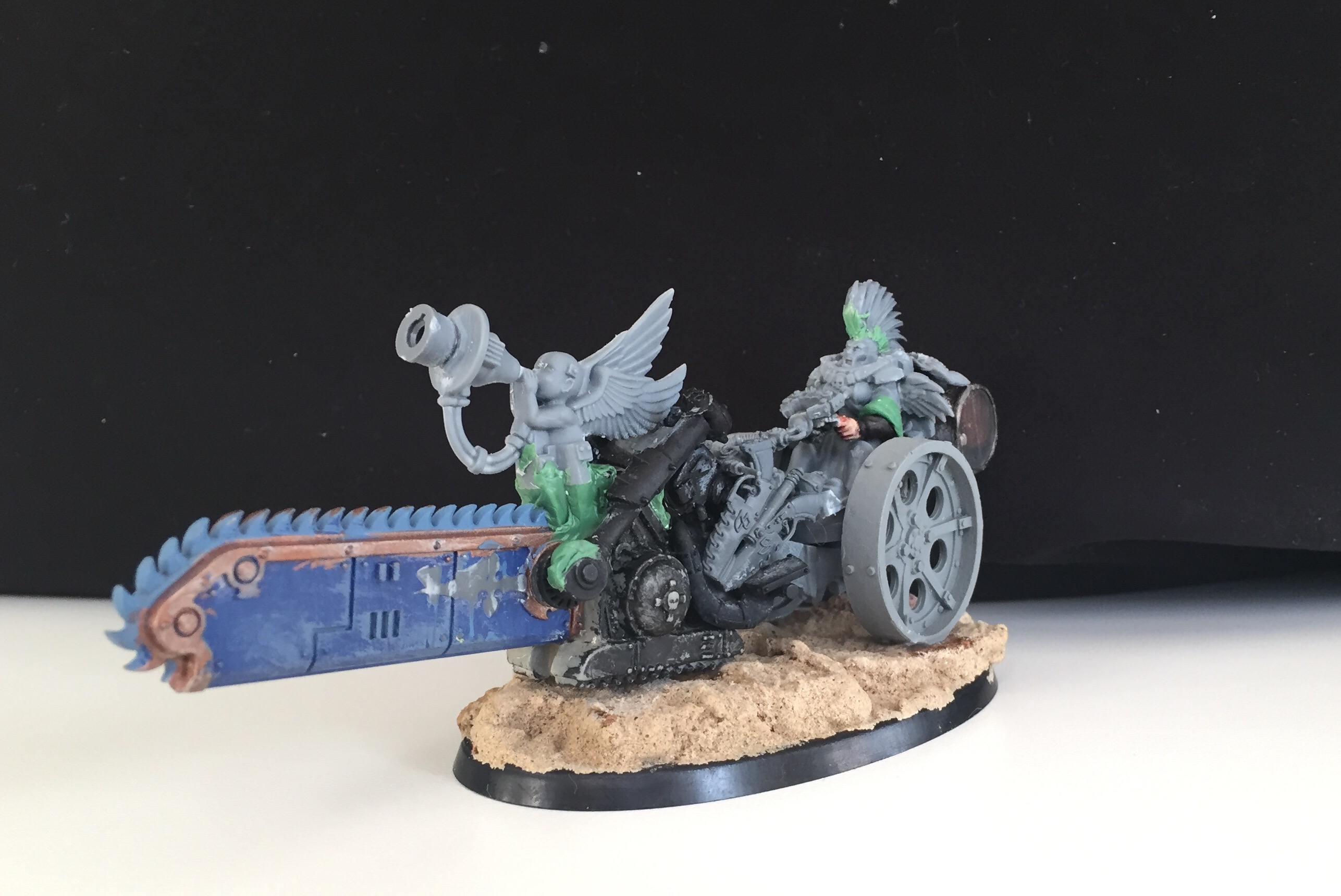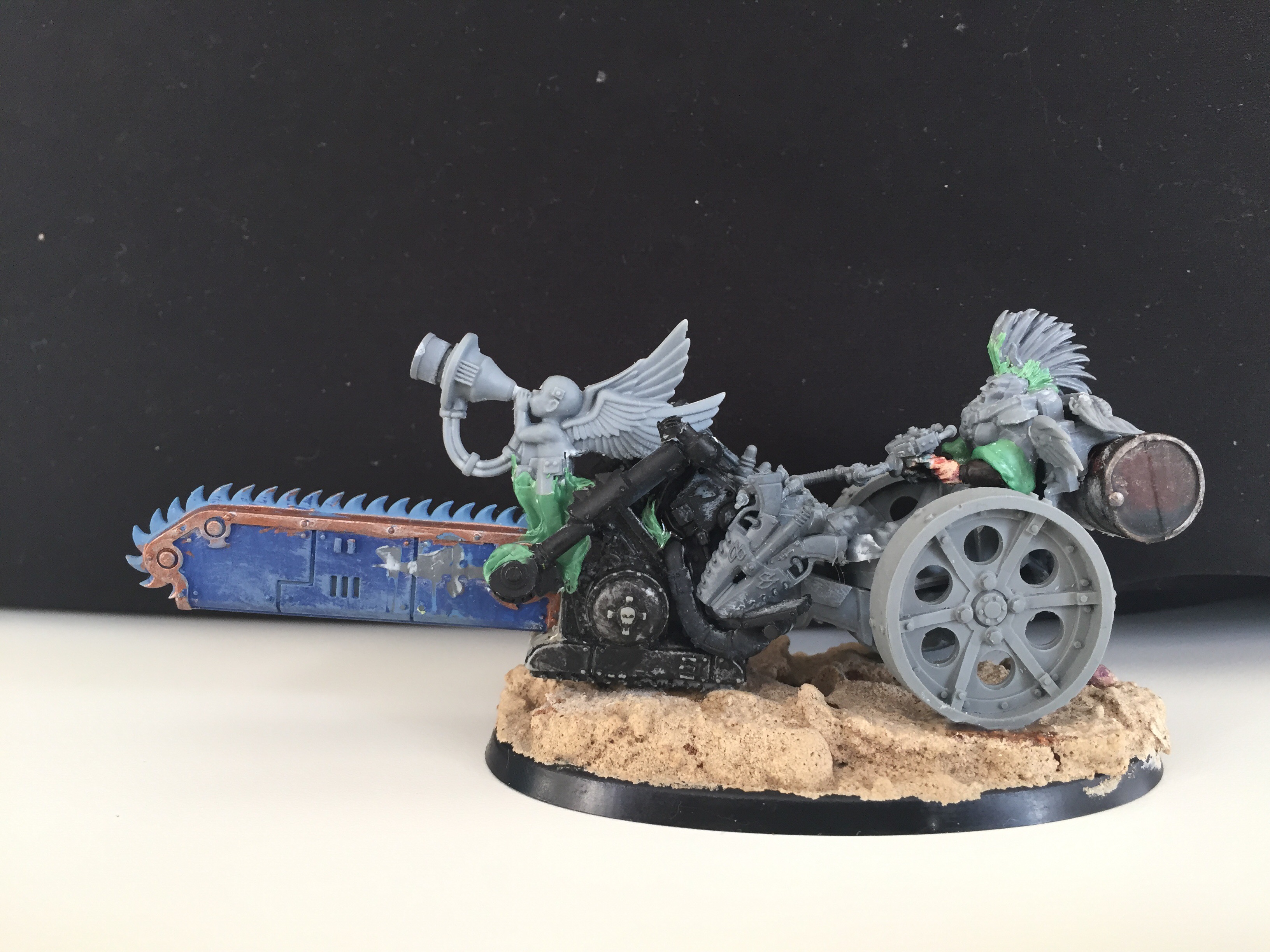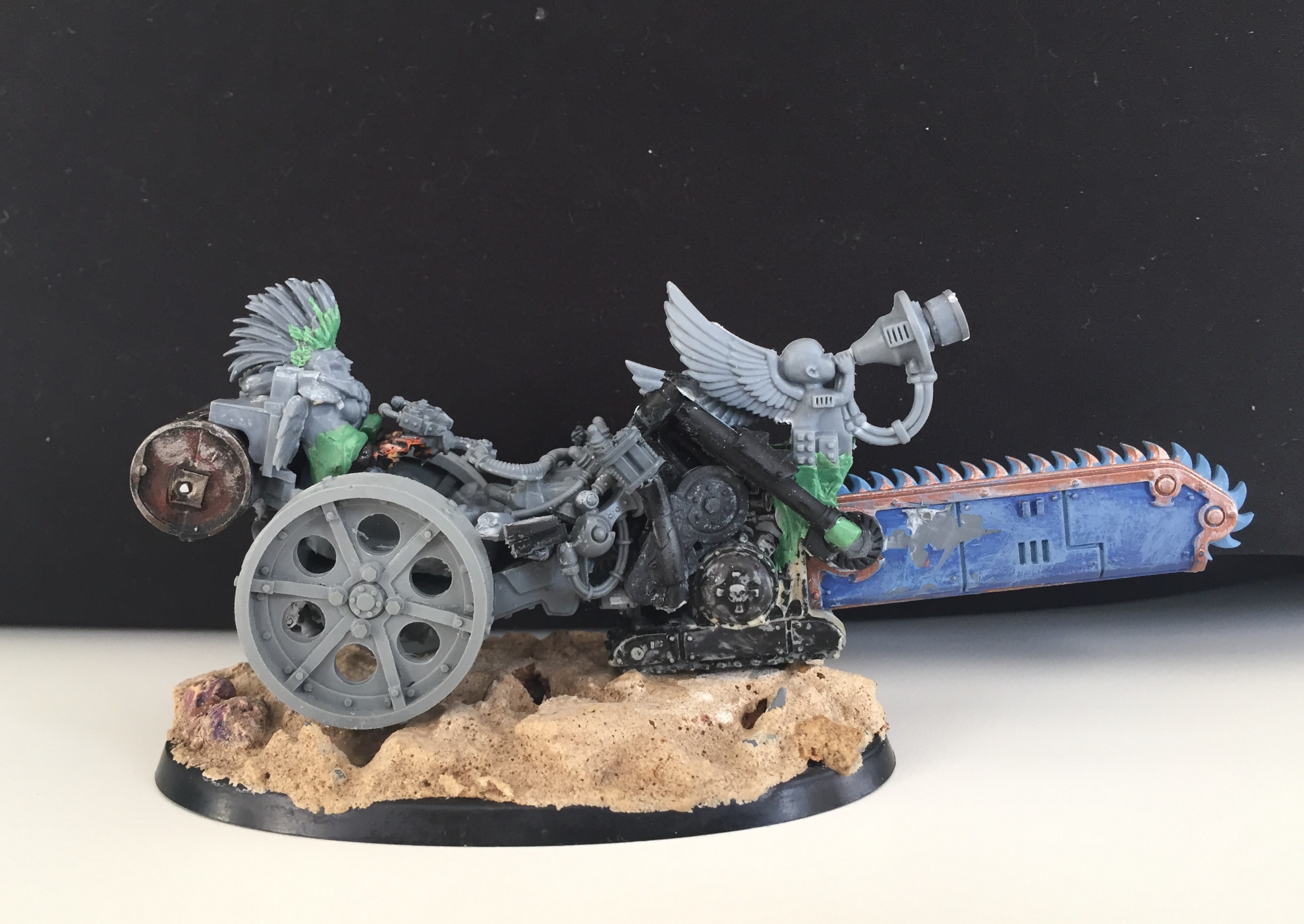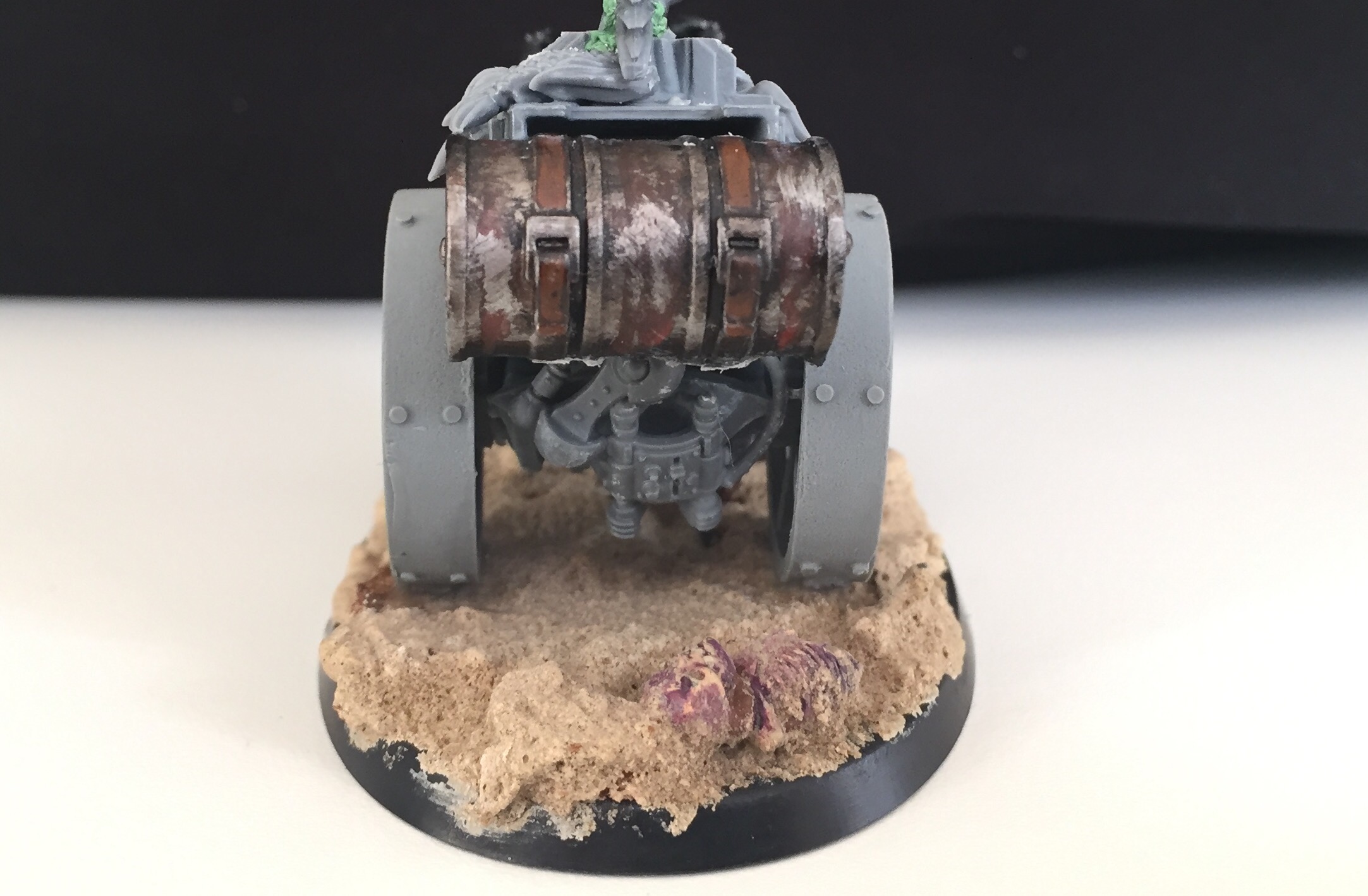 Originally I saw the core idea for the bike in an ork conversion but I modified it with the bits I had at hand. Can anyone spot which?