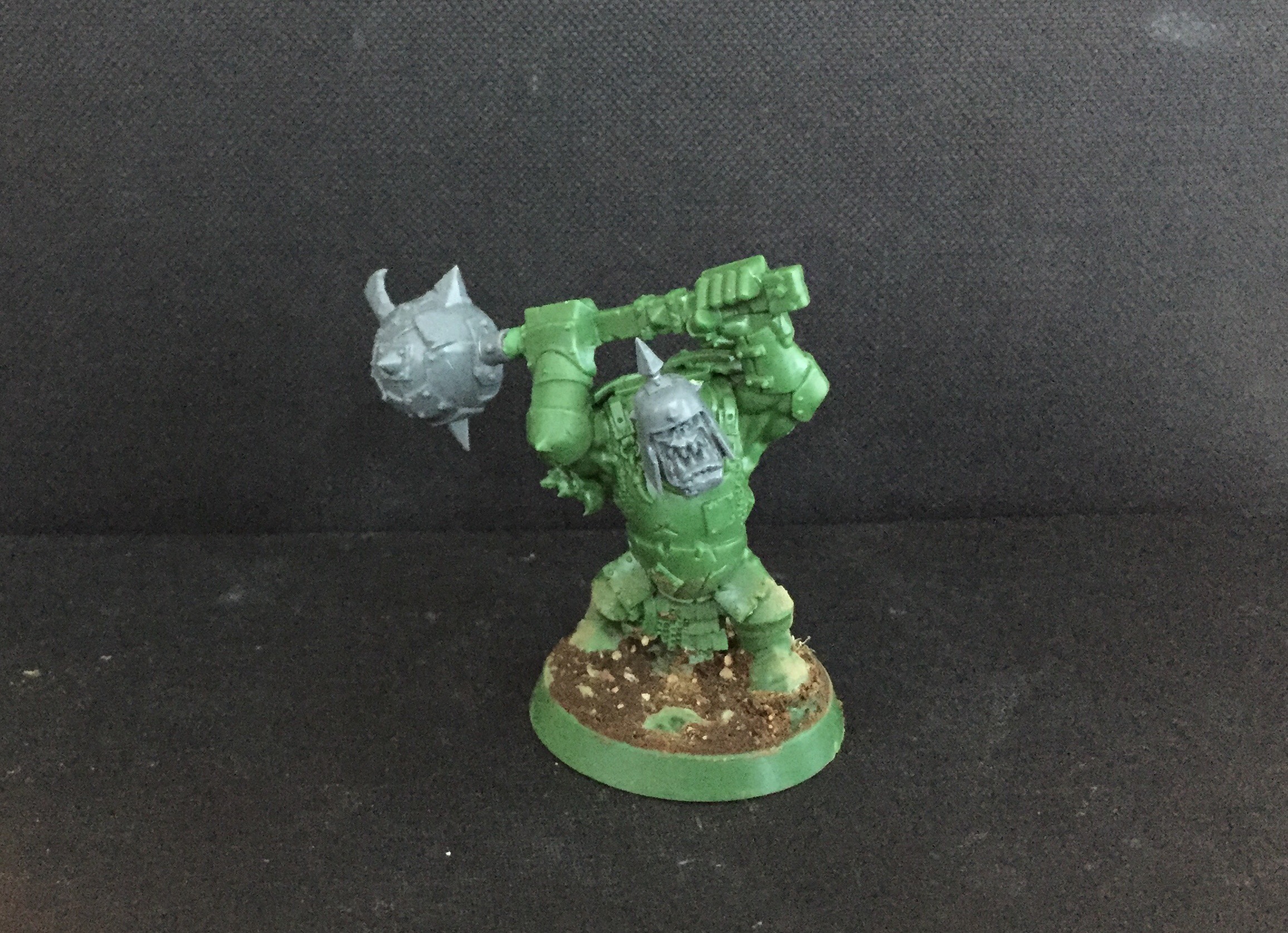 Gurzag Ironskull reborn into the Big Boss Red Skullz himself! Based on a 40k warboss with weapons and cloak from Gurzag. Greenstuff to tie it all in. Why go through all of that? The stock Gurzag is simply put..