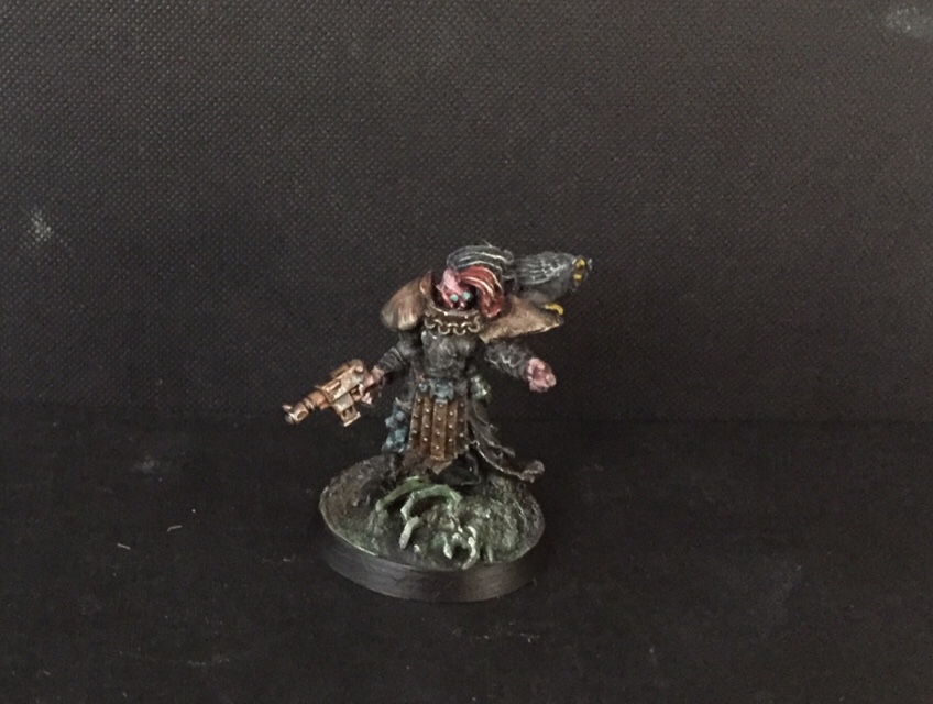 I wanted my Night Witches to have a grim and almost etheral quality, much like the way I understand the Thorn Moons. Hence the glowing blue “ghost lights” from the lenses. Other than that it is a restrained and monochrome scheme where I again work on evolving my metals.