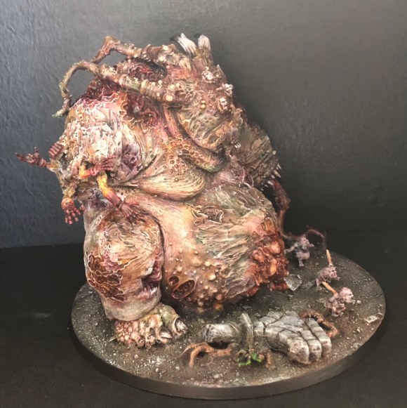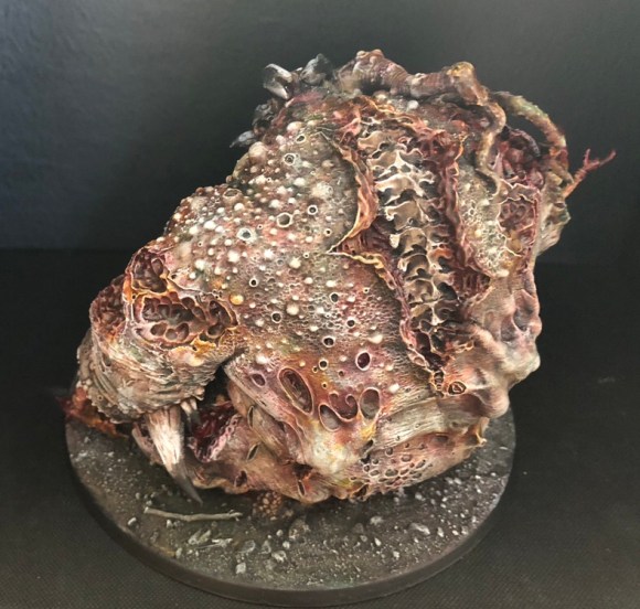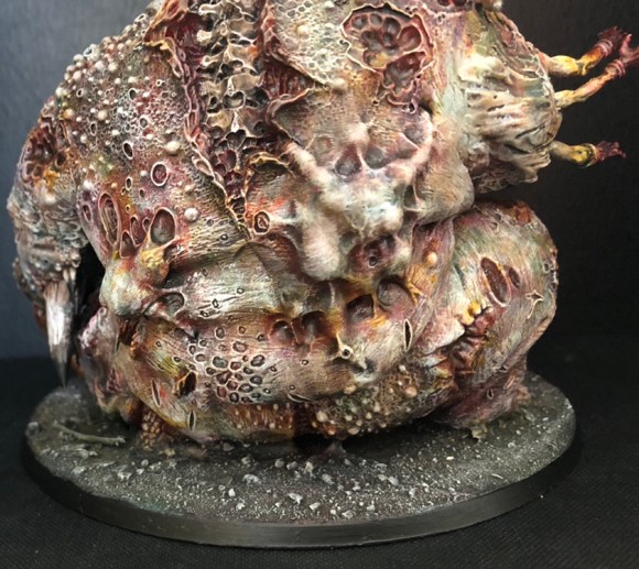 A-w-e-s-o-m-e! The blending of colors and textures are just amazing. I loved the little guys running around the front, nice touch. I really liked the back of the model, with many bumps and craters. Really pops. I’m just glad I’ll never have to face one of these in Blood Bowl! ๐Ÿ˜€