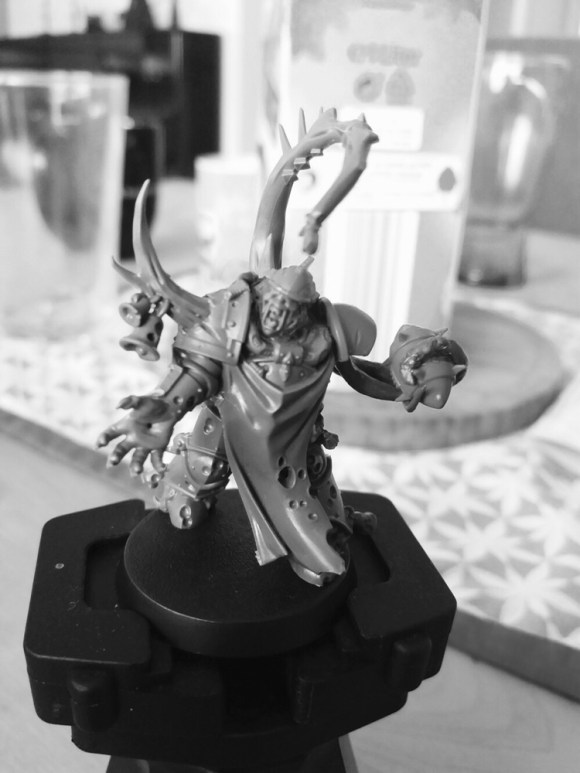 Blistus the Nurgle warrior (two mutations: big hand and tentacles)