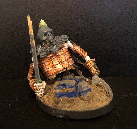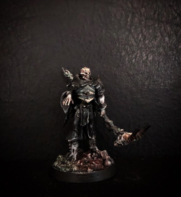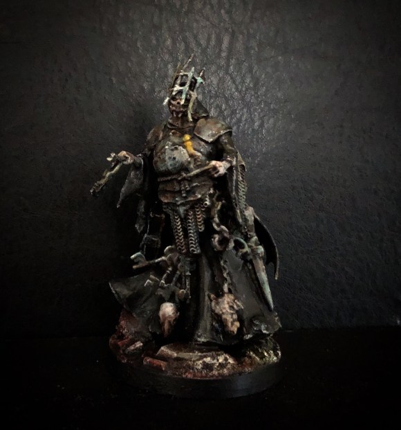I used the head and legs from the new undead range in AoS, flagellant body and nighthaunt bits. I wanted him to be tall, imposing yet simple in appearance. This to be a strong contrast to the wight kings.