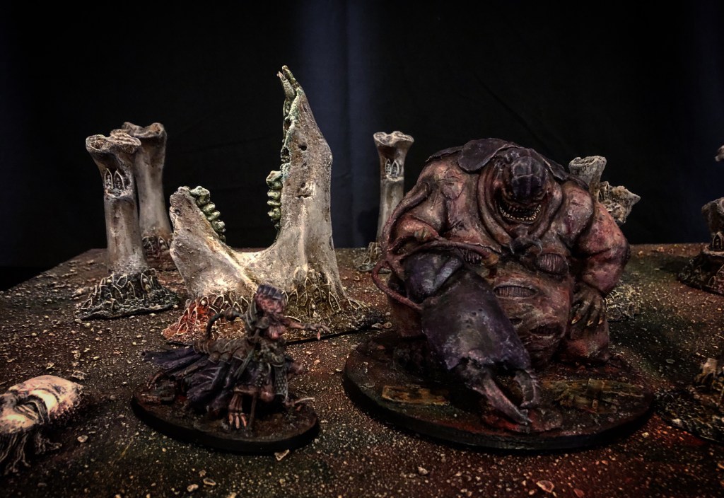 I just had a ton of fun with this one! Combining a lot of kits and a mini ton of greenstuff I made something suitably horrid and grim that still fits really well in with the rest.