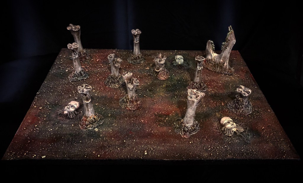 So I got a ton of Wilhelminiatures awesome bone trees and I just knew I had to make some Warcry sized terrain. Sadly I didn’t take any good WiPs but the build itself is simple as can be truth be told!