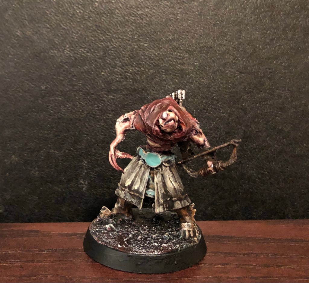The third and last (yes yet another bow equipped beastman 😂) is a mereman. Using the Silver Tower fish, a lizardmen torso and aos priest legs this one was cool enough. It is a really weird mini but I like it.
