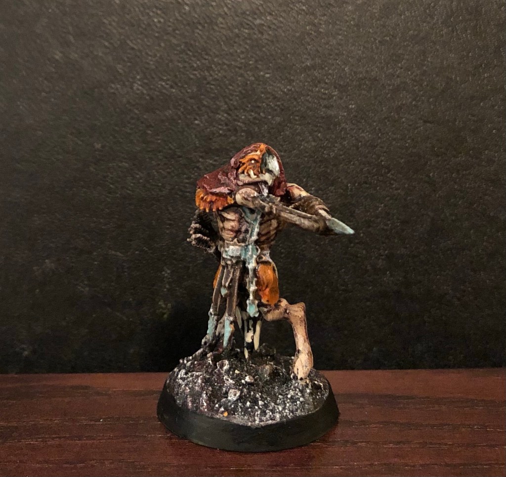 The first one I made as a bird type of beastman. Much like a tzaangor yes but a lot more tuned down. Using only the tzaangor head and some Underworlds bits to complete the mini. I now know that beastmen can’t have missile weapons but ah well. It is all good 😉